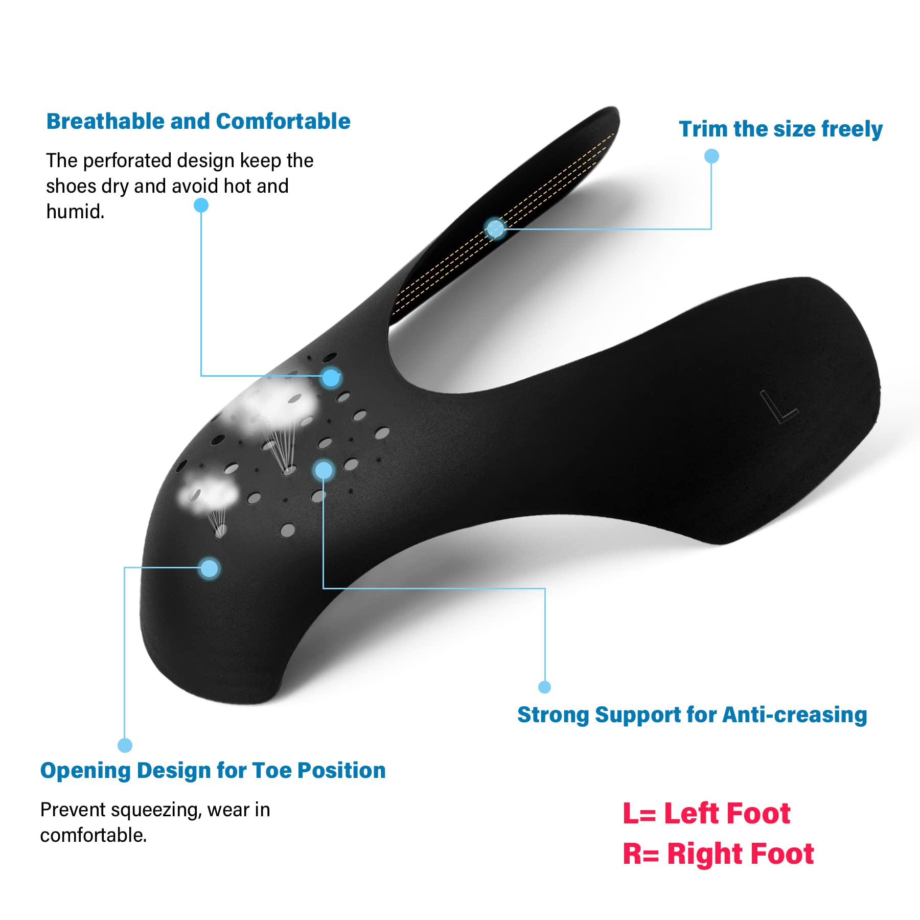 • More comfortable: Made of high quality PE and TPR to ensure a strong hardness, with auxiliary cutting lines, adjust them according to your needs for completely suitable. Breathable design keeps the shoes dry and extend the life of your precious sneakers.