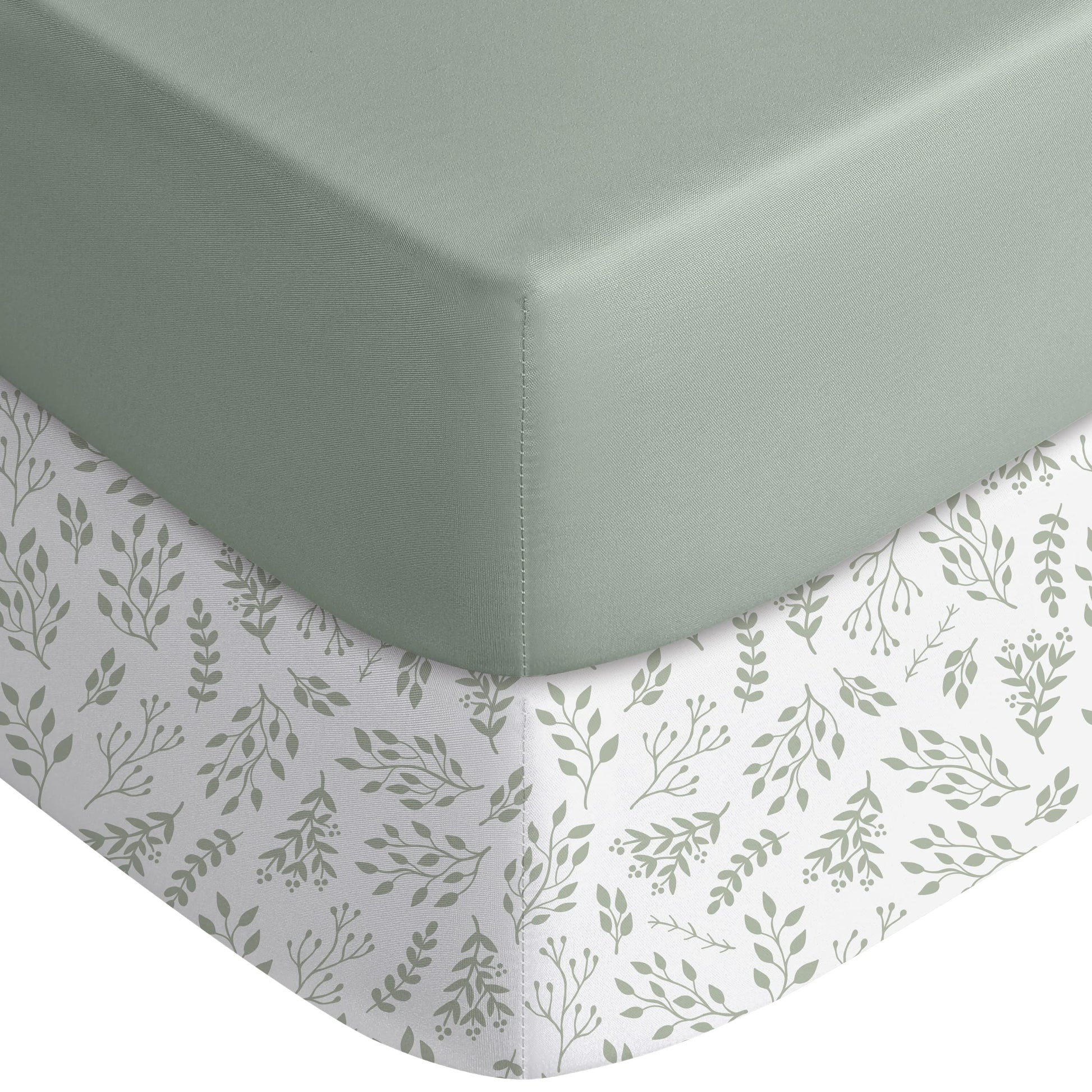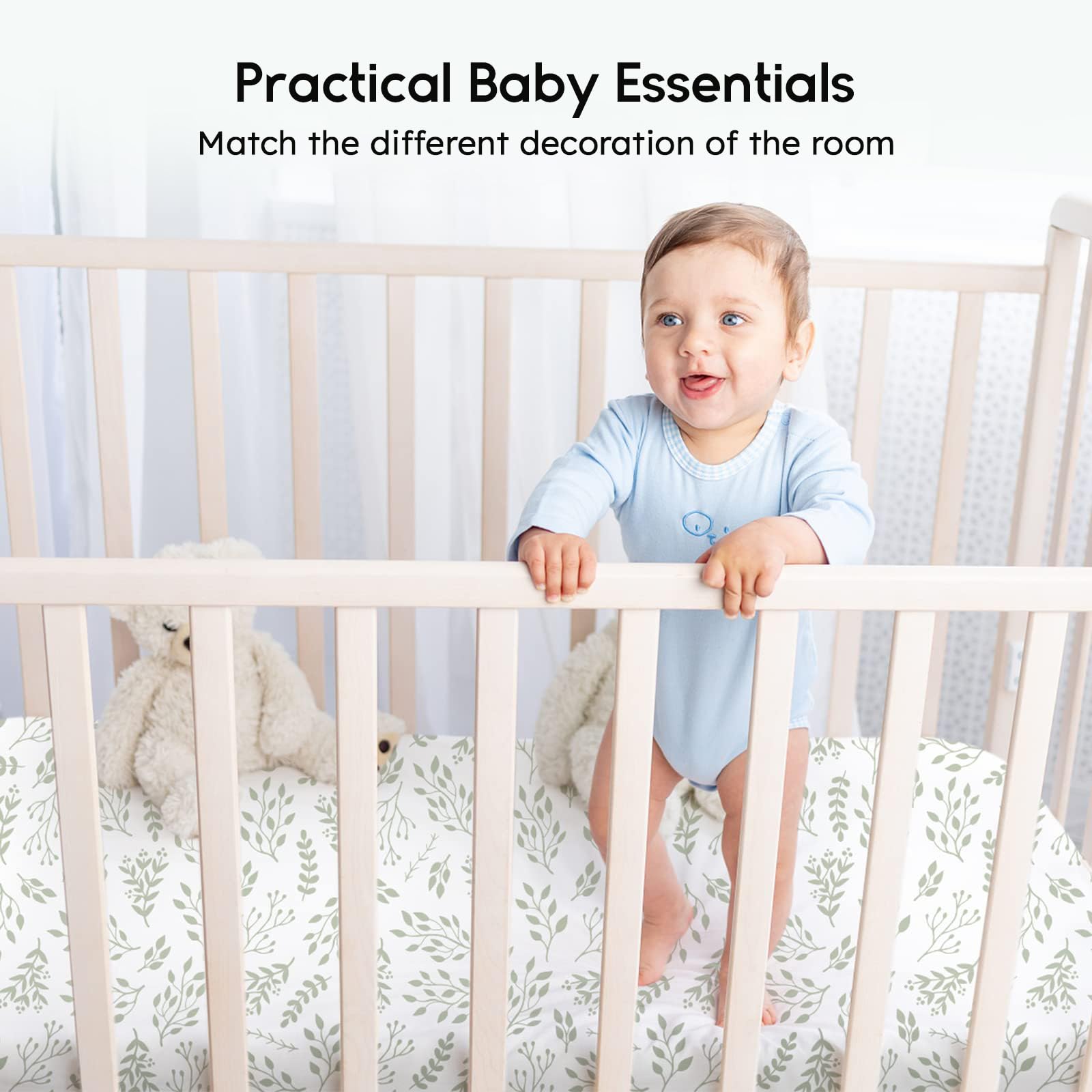Yoofoss Baby Crib Sheets for Boys Girls, Fitted Crib Sheet 2 Pack for Standard Crib and Toddler Mattress, Super Soft Microfiber Baby Sheet 28x52x8in(Green+Leaf)