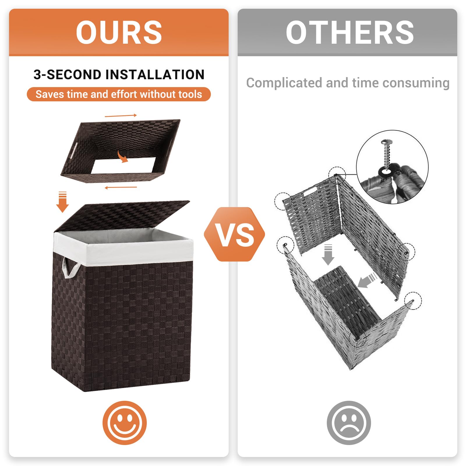 • 【STURDY & HIGH QUALITY】Crafted with iron frame to increase the load bearing ability. Lightweight basket with two handles can provide you take at least 44 lbs of laundry up and down stairs easily. Or you can take the machine washable liner bag to laundromat directly. The neat lid design prevents the spread of odors. It can also give you a neat environment even you don't want to wash your loads of dirty clothes
