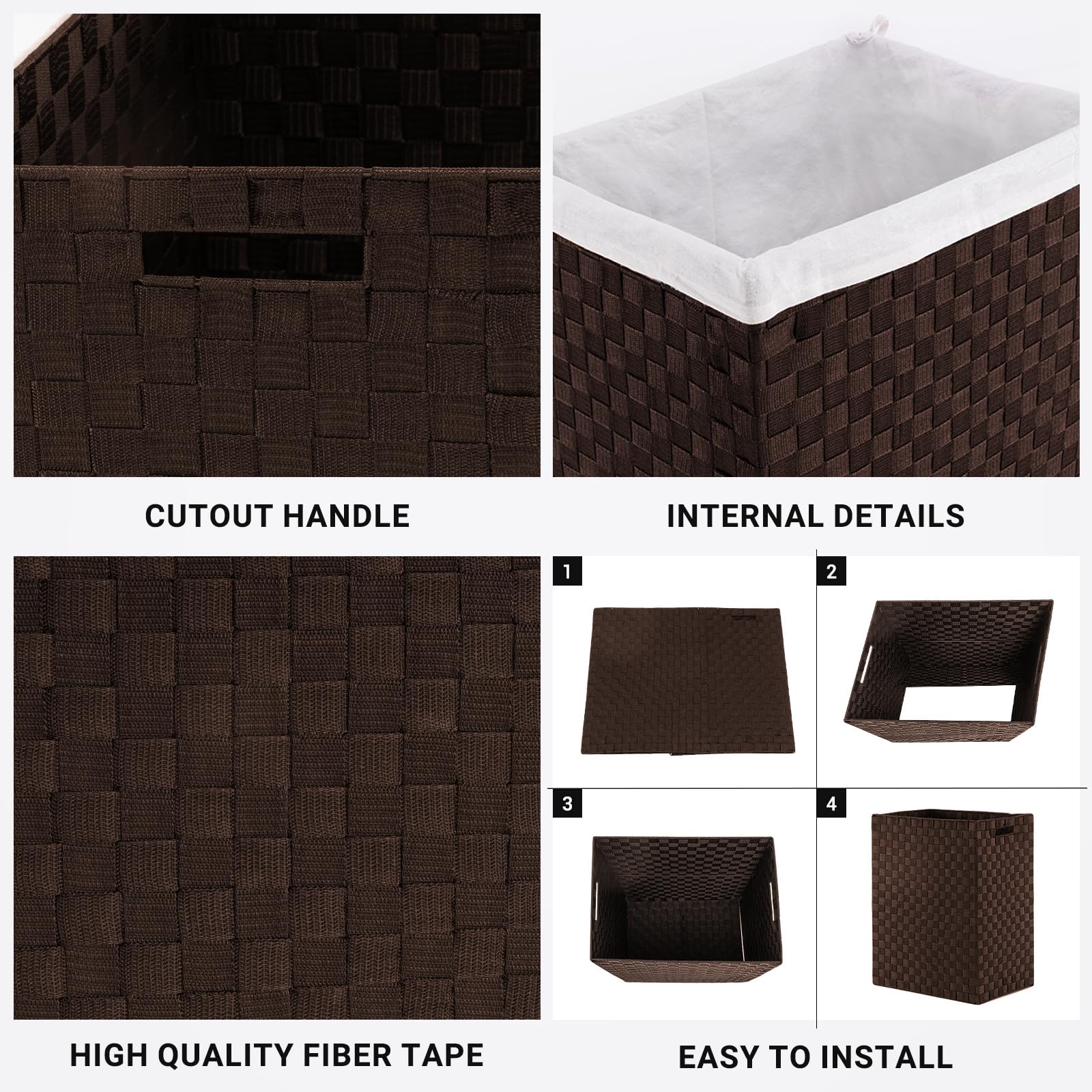 YOUDENOVA Handwoven Laundry Basket Hamper with Removable Liner Bag and Lid, Collapsible Clothes Hamper with Handle, Brown
