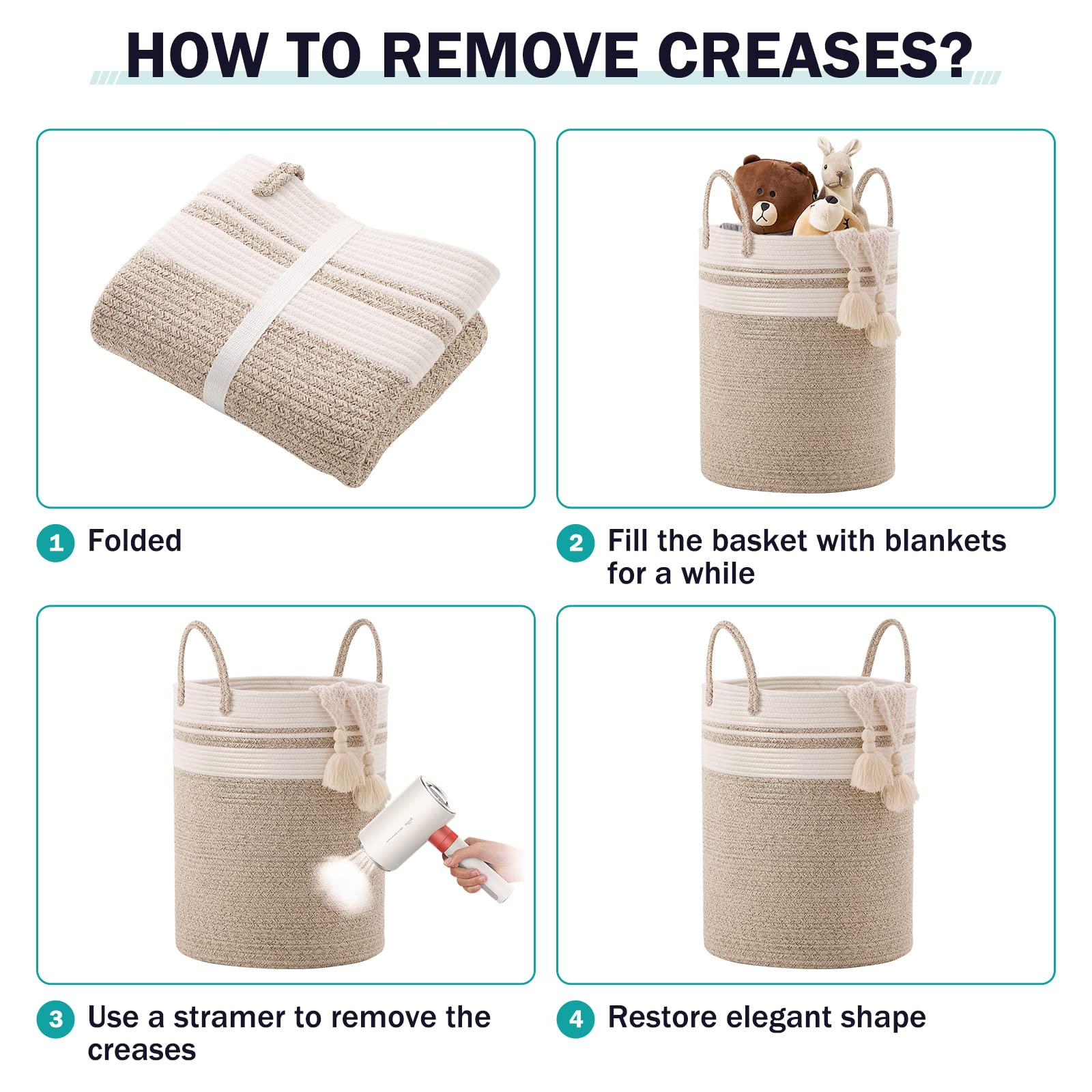 • 【Multipurpose Storage Baskets】58L capacity basket can keep things organized in a stylish and decorative way. You can use them to store extra towels, blanket, clothing, toys for baby and dogs, books, pillows or any other household items around the house, anything you can imagine