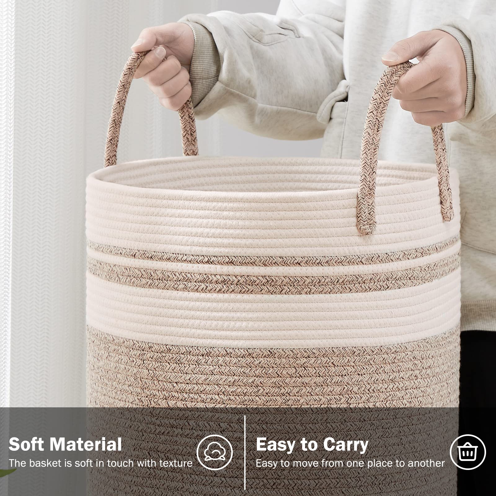 YOUDENOVA Woven Rope Laundry Hamper Basket, 72L Tall Luandry Basket, Baby Nursery Hamper for Blanket Storage, Clothes Hamper for Laundry in Bedroom-Large-Brown