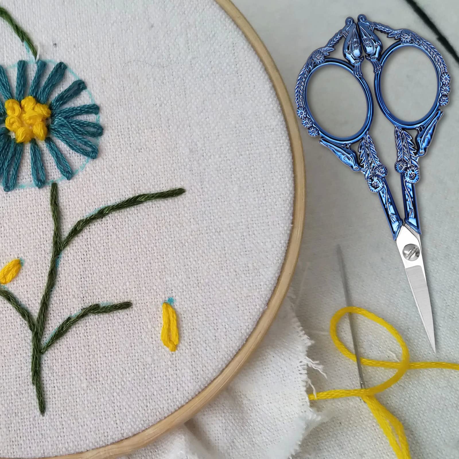 YOUGUOM Embroidery Scissors, Small Sharp Pointed Detail Shears for DIY Craft Needlework Yarn Sewing Cross Stitch Thread Cutting Handicraft Tool, 4.6in Blue Little Bird