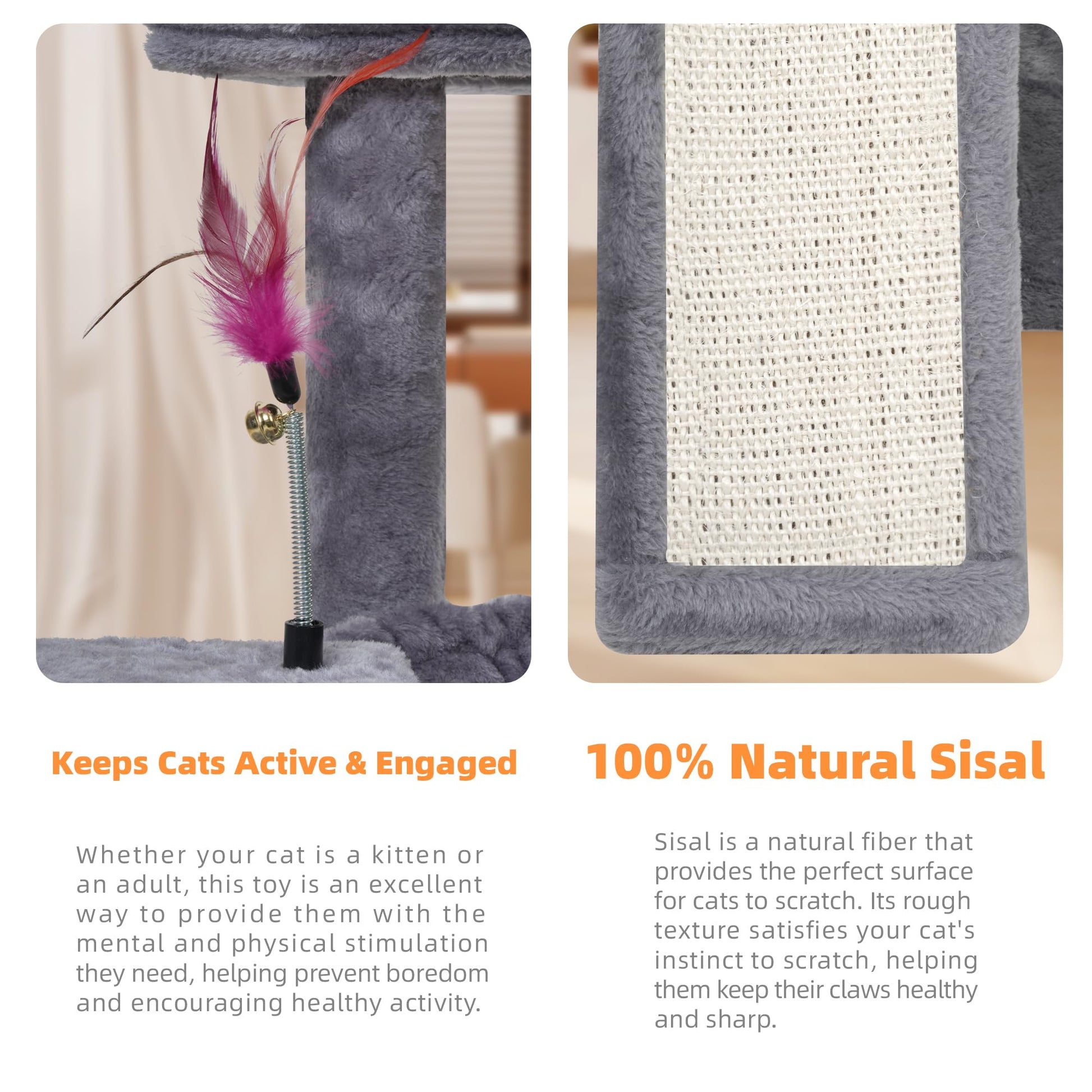 • Interactive Playtime: Spring toys and dangling balls spark endless entertainment, keeping cats engaged with stimulating activities that satisfy their natural curiosity and energy