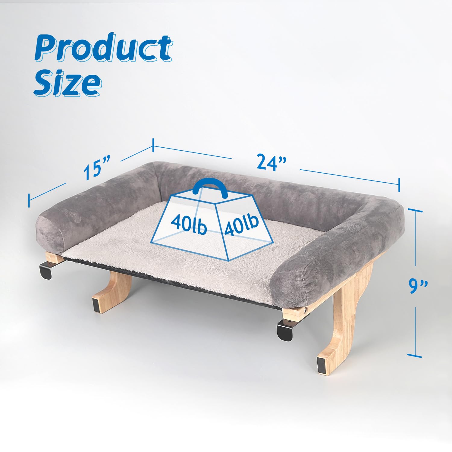 Zakkart Cat Perch for Window Sill with Bolster - Orthopedic Hammock Design with Premium Hardwood & Robust Metal Frame - Cat Window Seat for Large Cats and Kittens - Natural Color Wood with Gray Bed