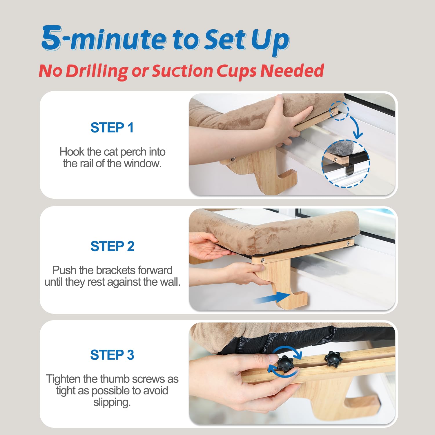 • 【Sturdy Build & High Quality Material】Our cat window perch is crafted from premium hardwood and machine washable fabric. Rest assured that your cat can safely perch by the window without any wobbling or tilting.