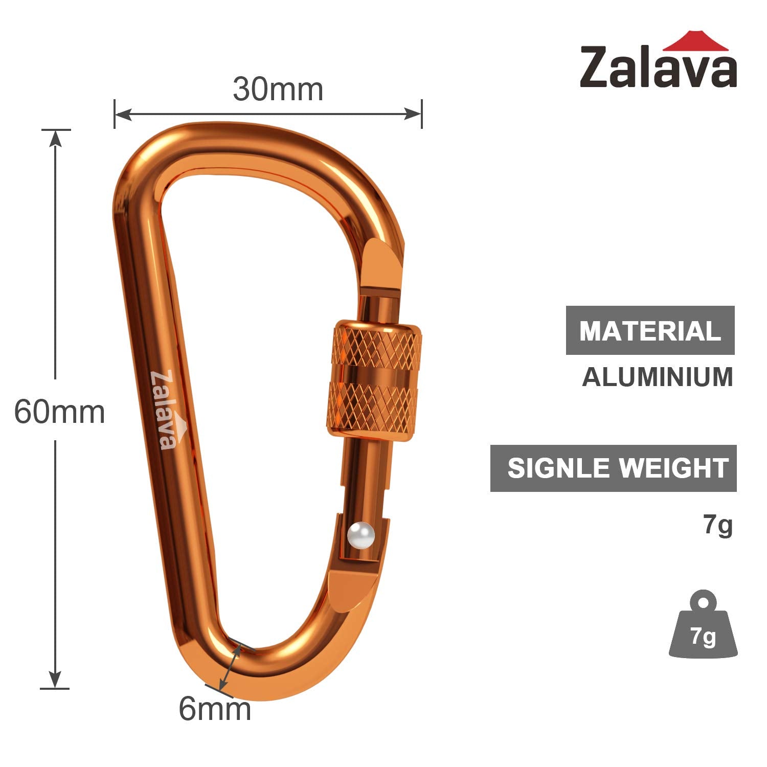 Zalava 6pcs 2”D-Clip Durable Locking Carabiner Keychain Clip with Hook