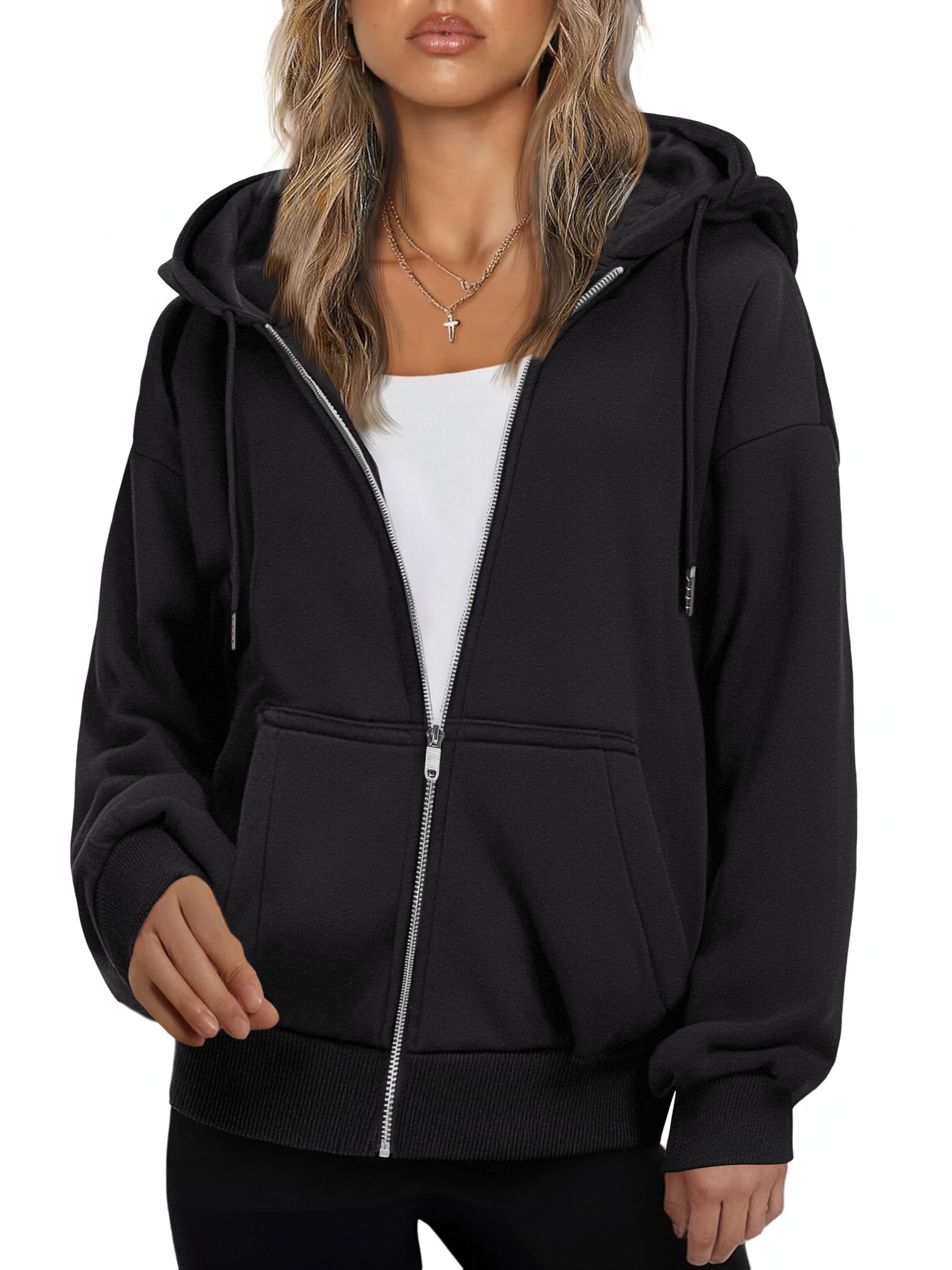 Zeagoo 2025 Hoodies Y2k Fashion Clothing Sweatshirt Women Zip Up Hoodie Fashion Oversized Sweatshirt Black