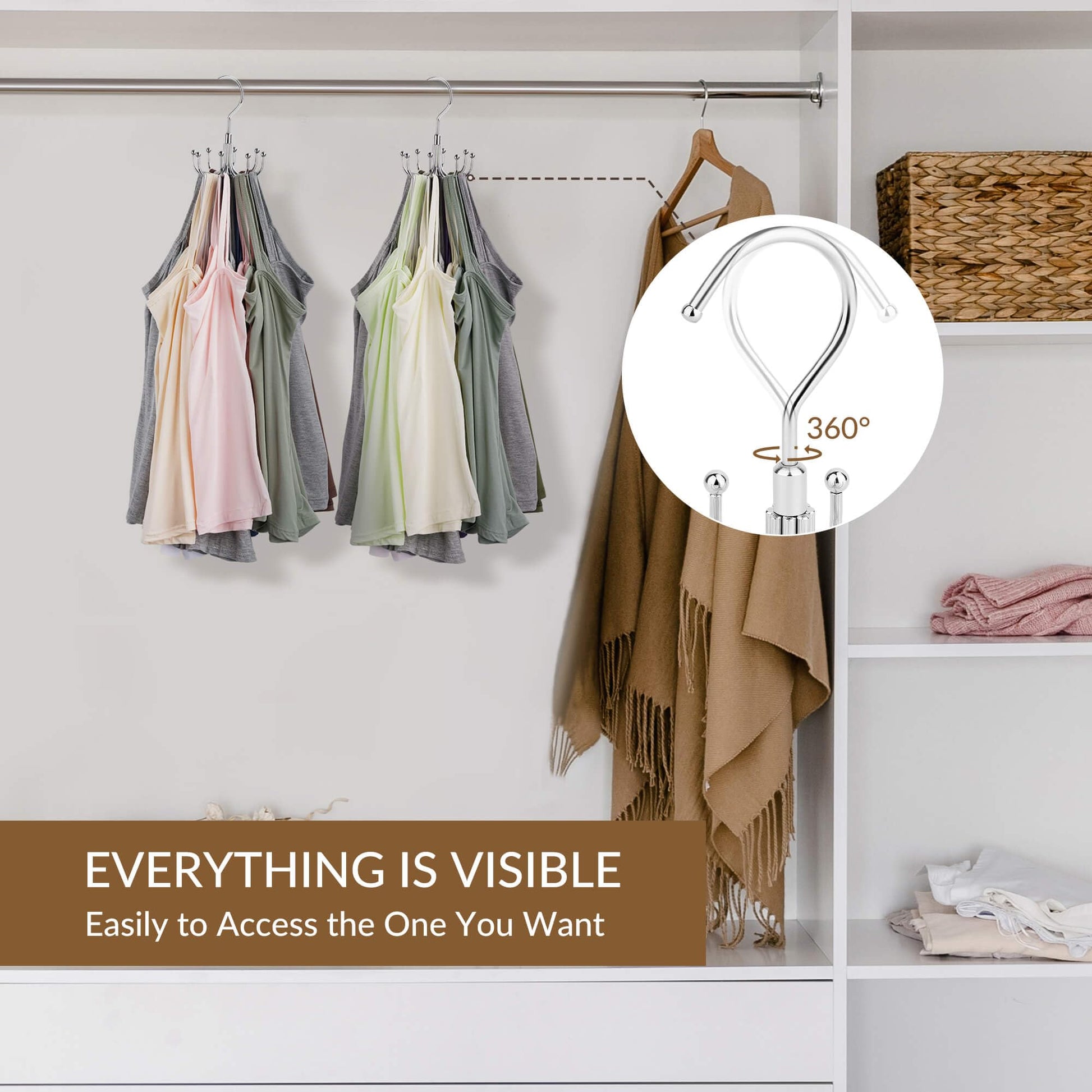 ZEDODIER Tank Top Hanger, Rotatable Bra Organzier for Closet, Max 24 Storage Capacity Sport Bra Holder, Metal Space Saving Closet Organizers and Storage, Silver