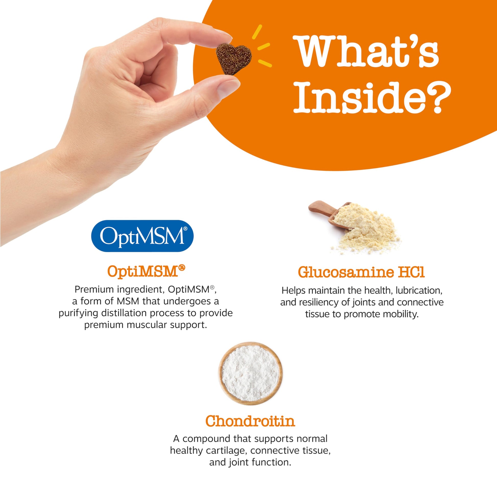 • GLUCOSAMINE HYDROCHLORIDE FLEXIBILITY: This dog glucosamine and chondroitin supplement helps maintain joint health, lubrication, and resilience for an active lifestyle