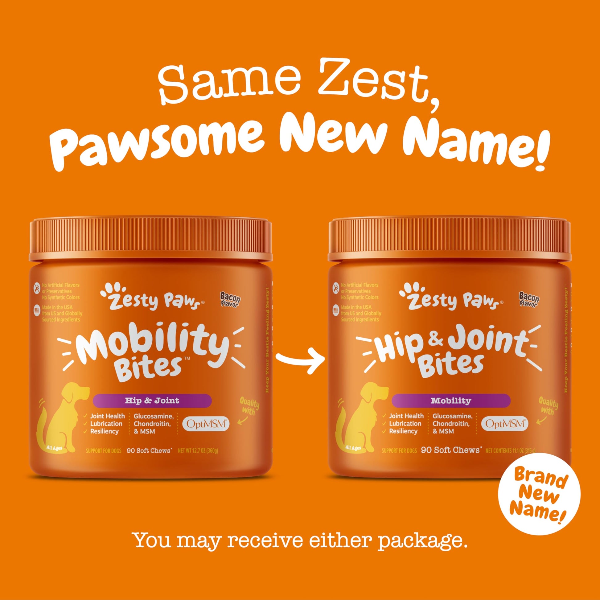 Zesty Paws Hip and Joint for Dogs, Glucosamine for Dogs Hip and Joint Supplement with Chondroitin, MSM, Vitamins C & E - Bacon, 90 Count