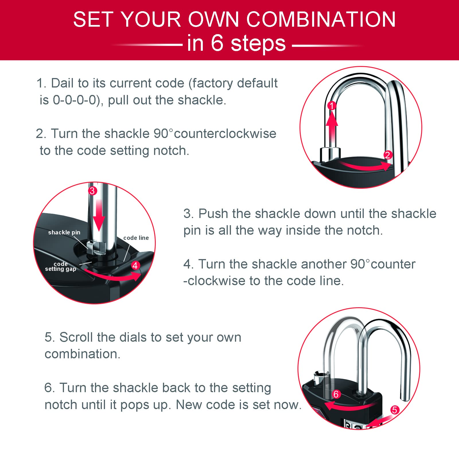• EASY & SECURE: The resettable 4 digit combination TSA approved travel cable lock allows you to set you own combination with 10,000 unique options, which is 10 times hard to crack than a 3-digit. Simple 6 steps instructions are included at the back of the package cardboard. Please note that NEVER forget your password or the luggage padlock will be of no use.
