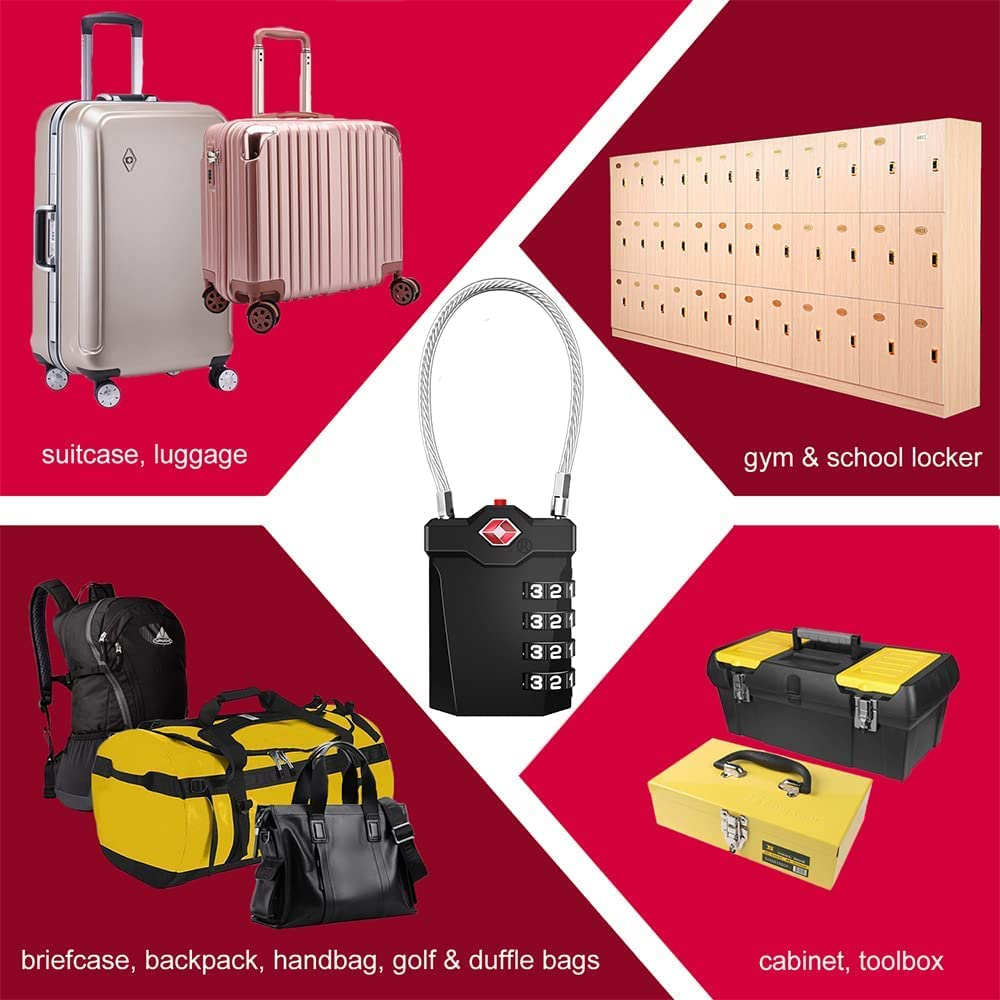 • TSA APPROVED: The 4 digit cable lock is accepted and recognized by TSA, which allows the TSA screeners to unlock your baggage for security inspection with an official master key. With ZHEGE travel lock, they have to re-lock before removing their key, so your belongings will always be protected. And if your luggage is ever opened, the red alert indicator at top will pop out to let you know as soon as you pick it up at the airport.