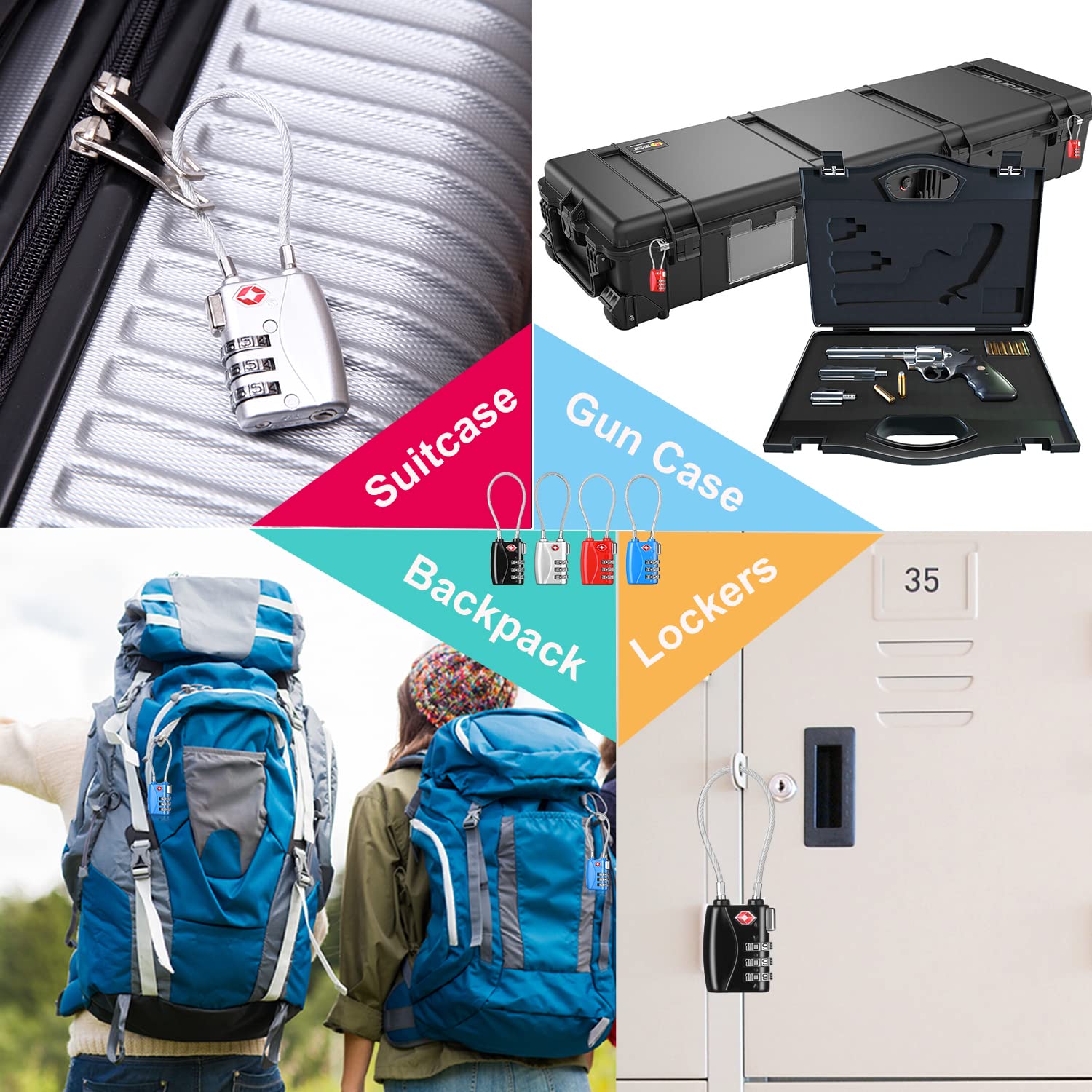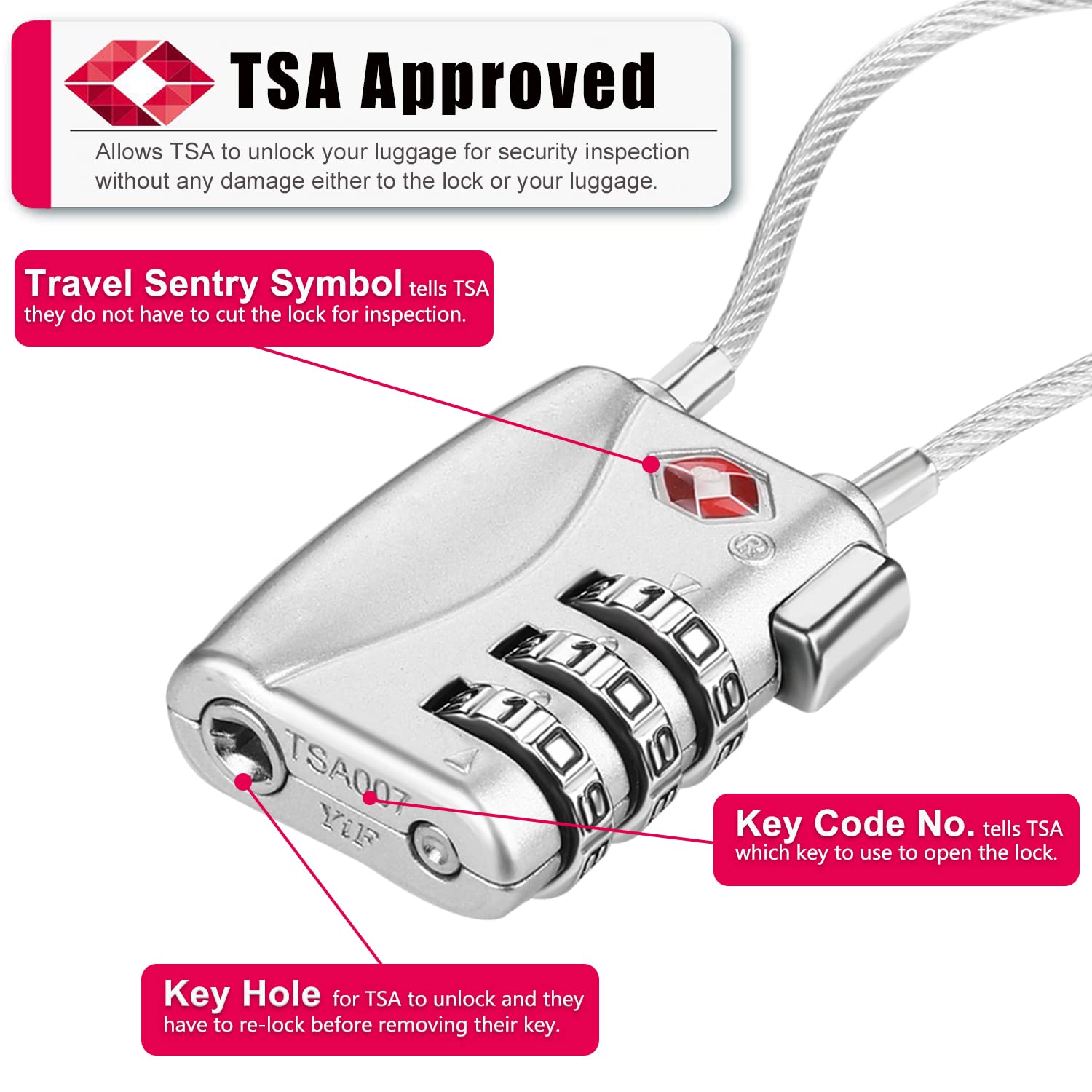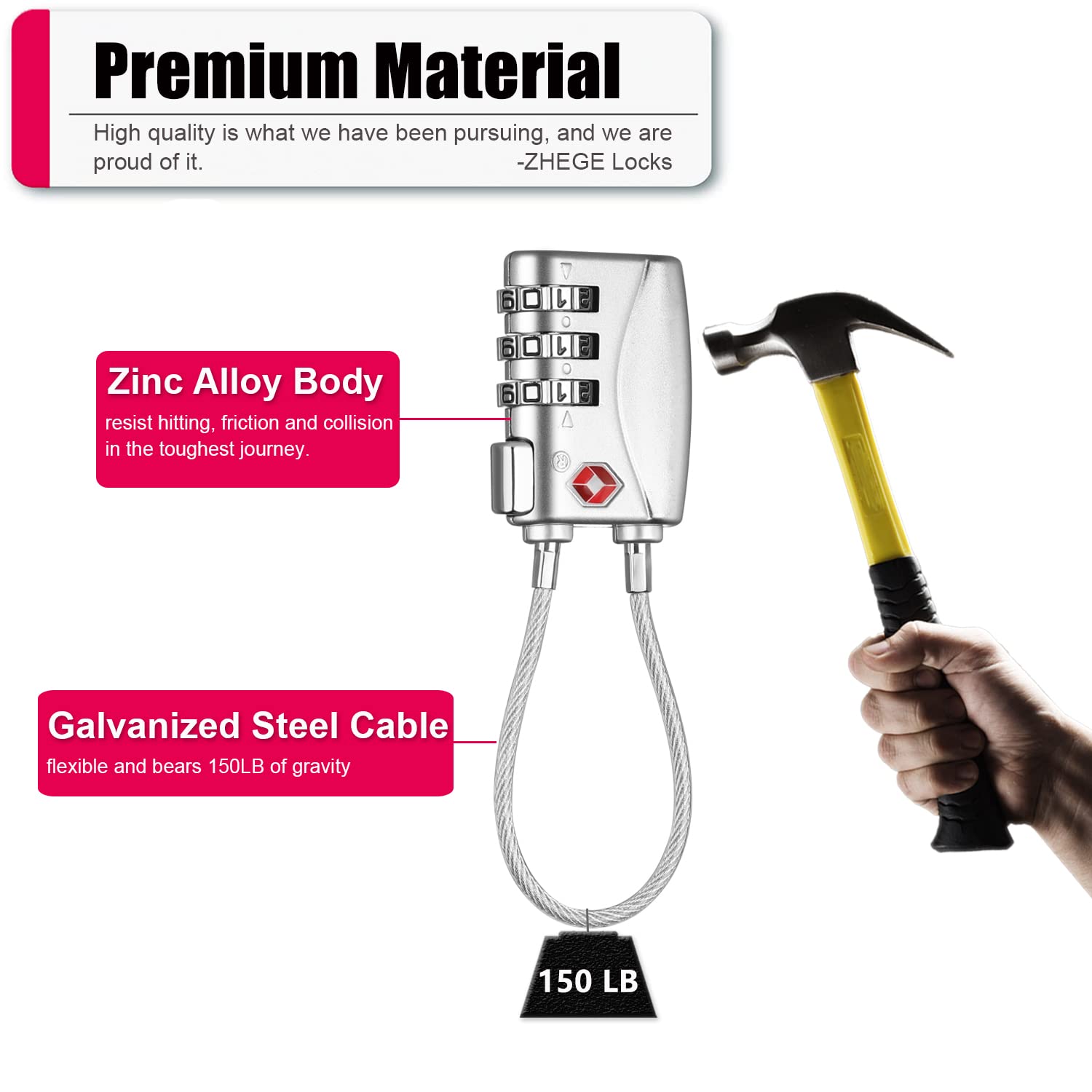 ZHEGE TSA Lock for Luggage 3 Digit Combination Cable Lock with Alloy Body for Suitcase, Baggage, Backpack, Pistol Case (Silver)