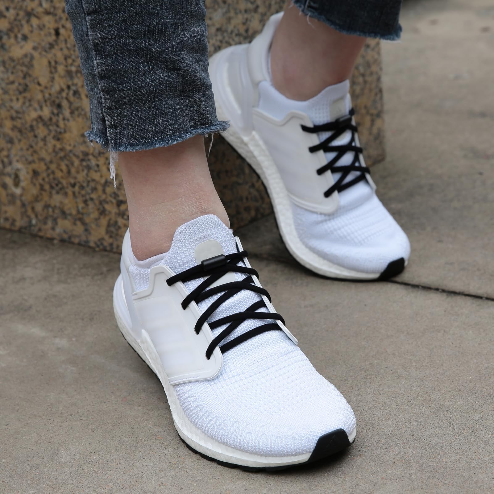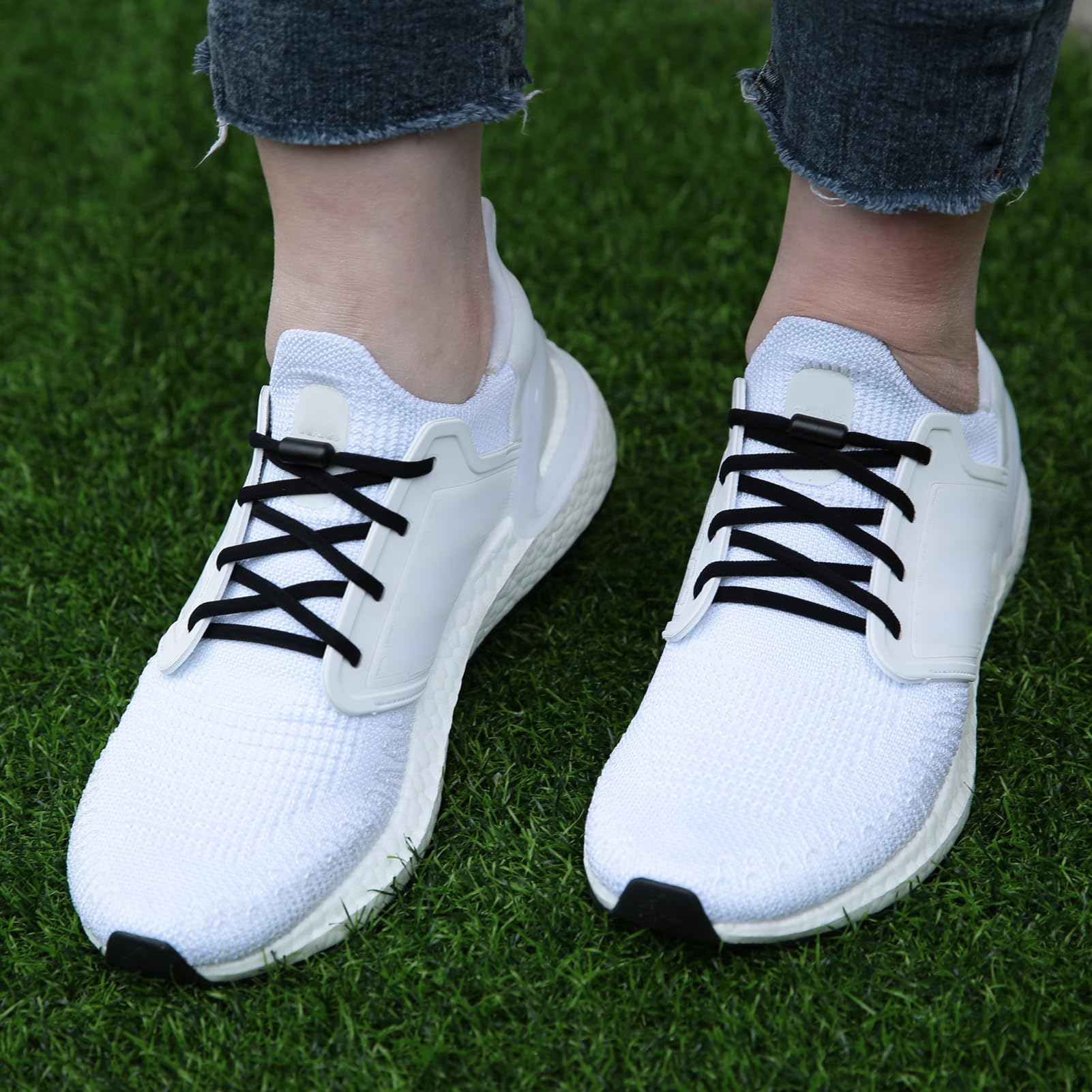 ZHENTOR Elastic Shoe Laces, Elastic No Tie Shoelaces for Sneakers, One Size Fits All Adults and Kids Shoes (Black(1 pair))