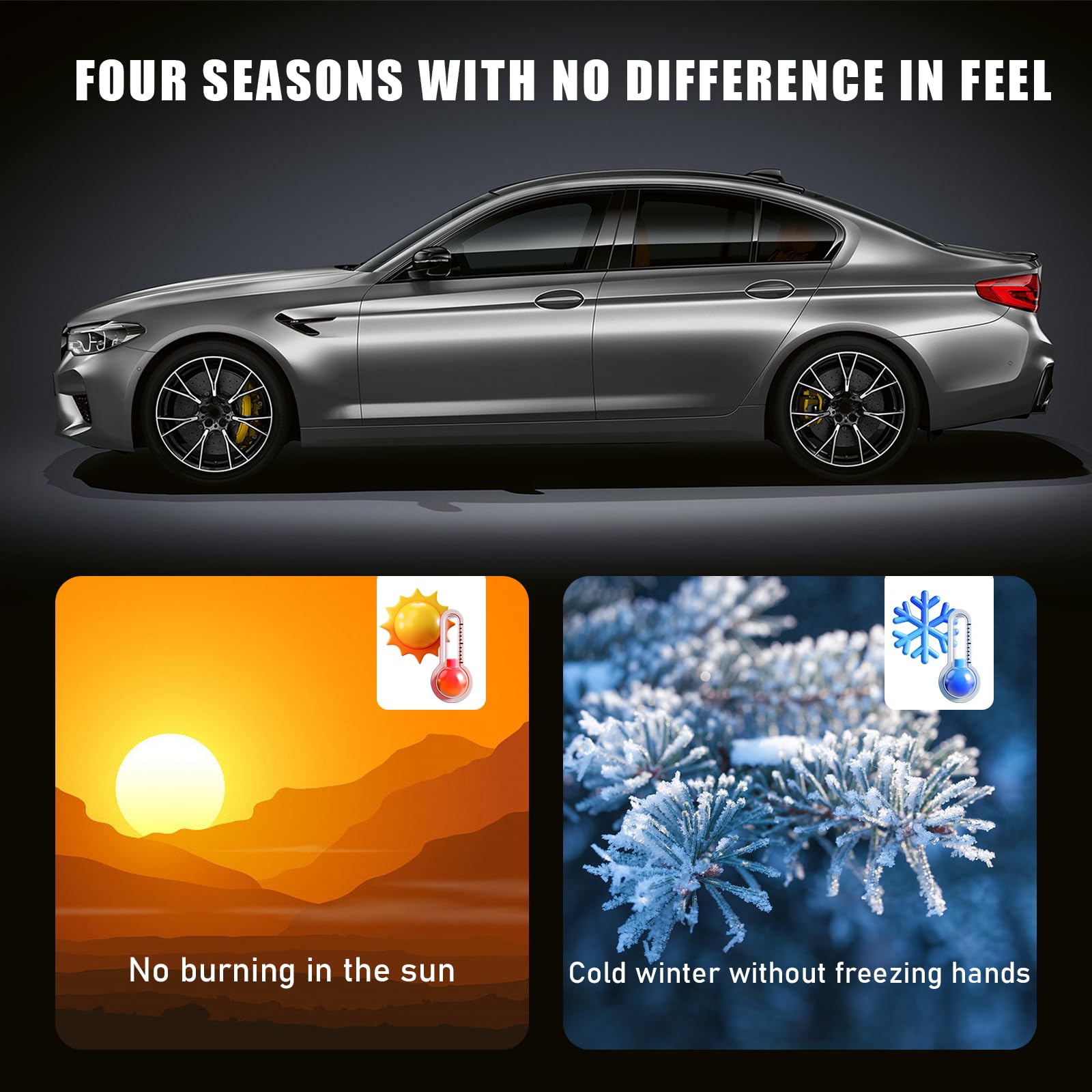• 【Fitting Protection】: It provides a three-dimensional fit, maximize the protection of the steering wheel and reduce wear and tear and scratches from foreign objects. Lightweight and thin design fits well, comfortable and wrinkle-free. Super grip makes the steering wheel more stable, the steering wheel surface is designed to fit your steering wheel perfectly, enhance the non-slip performance, ensure driving safety.