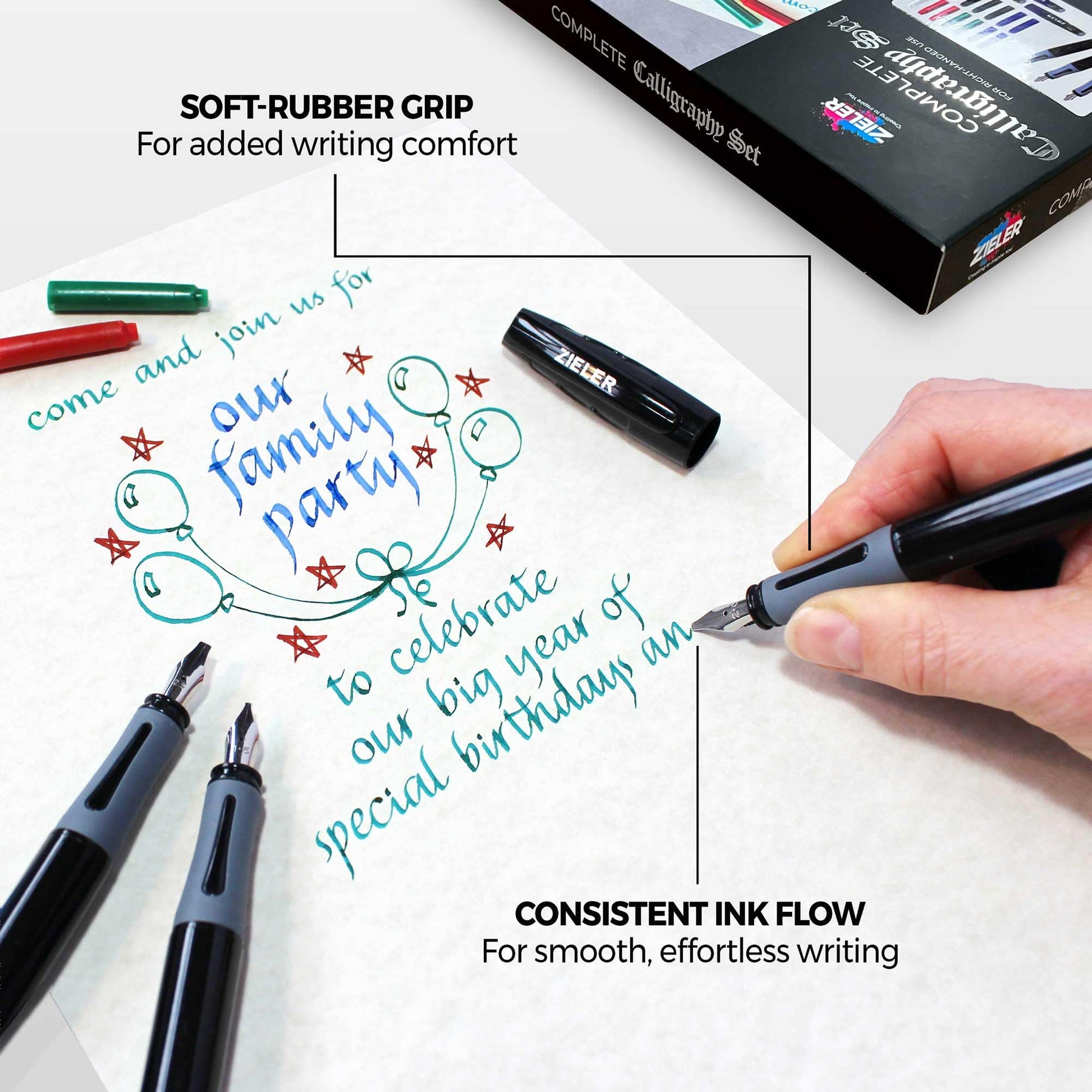 Zieler Calligraphy Pen Set - Complete 3 Pen 17-piece Calligraphy Writing Set - Free-Flowing Pens with Soft Rubber Finger Grip - Suitable for All Levels