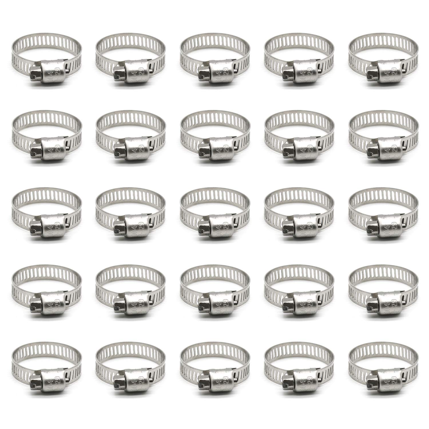 ZIPCCI Hose Clamp, 1 Inch Stainless Steel Worm Gear fuel line hose clamps, 19-29mm (25pack)