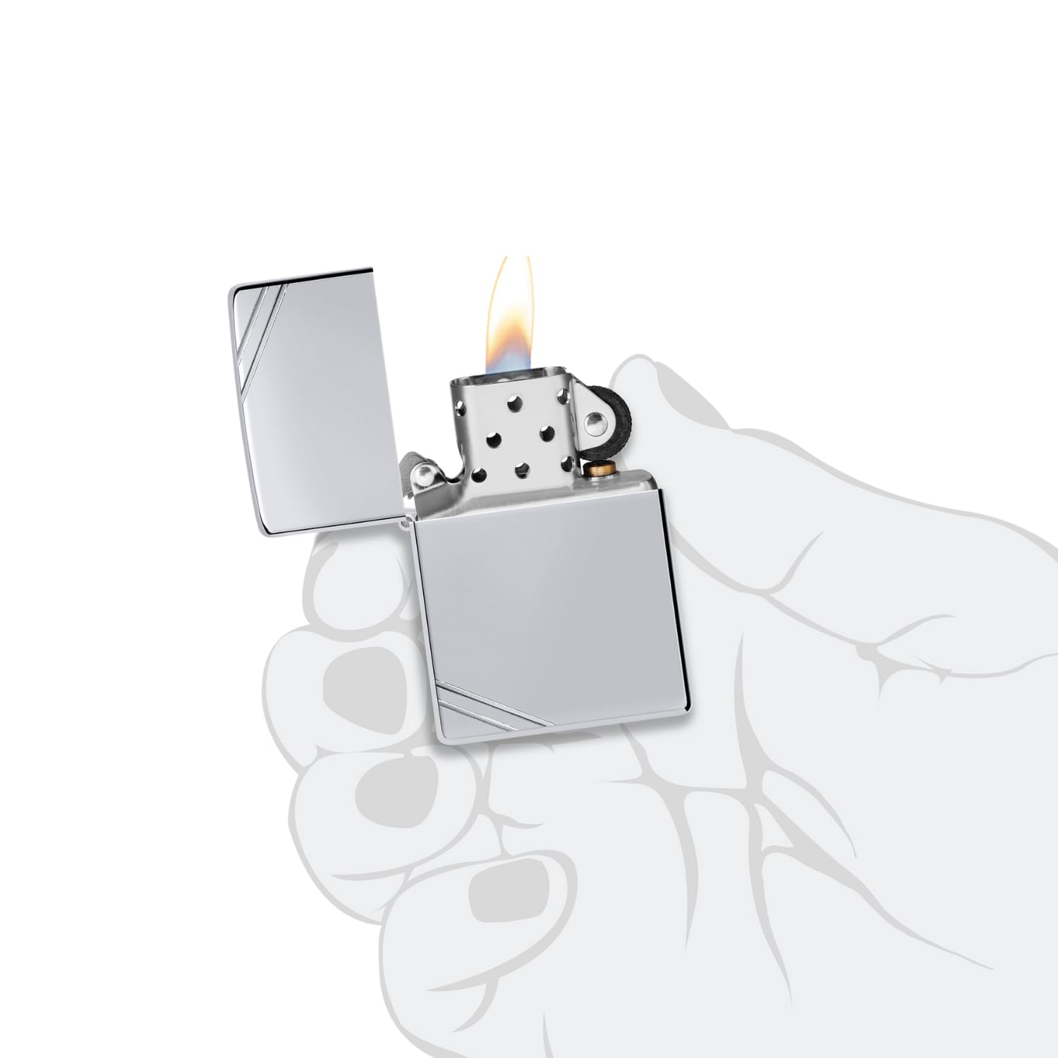 Enjoy the beauty and quality of a genuine, made in the USA Zippo pocket lighter. The high polish chrome finish and traditional slash design of the Vintage model unite style and sophistication with the legendary durability of America's favorite lighter. The Vintage makes an outstanding collector's piece or everyday fire-starting tool.