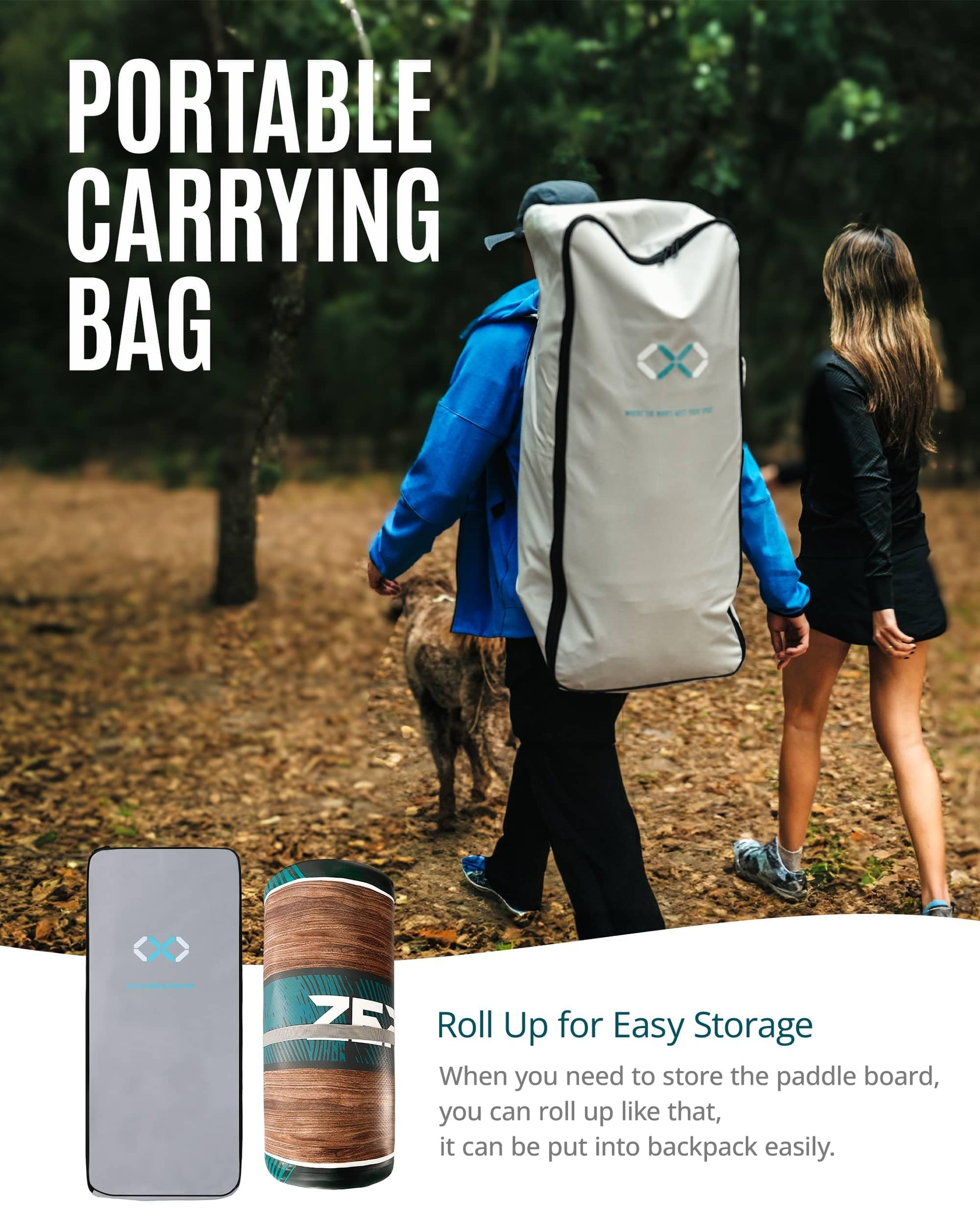 • 【Ultimate Portability】ZLX inflatable paddle board for adults rolls into a lightweight backpack(included) for hands-free hiking to remote lakes and coastal beaches – 30% more compact than wooden boards. Fits effortlessly in car trunks or apartment closets, with rapid inflation(air pump included), ready for lake adventures and beach days in under 8 minutes.