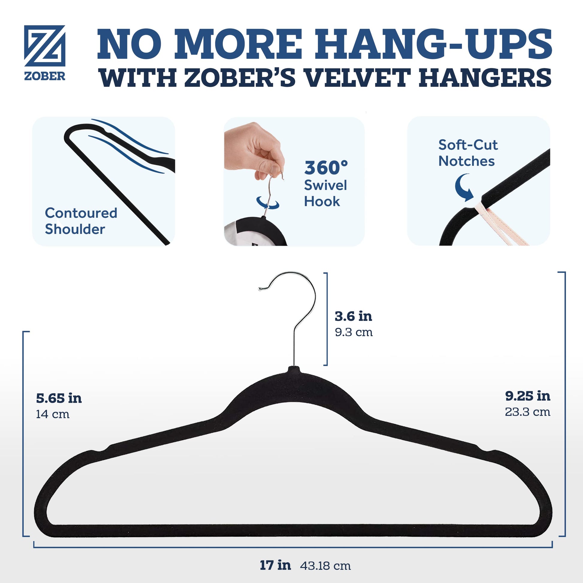 Zober Velvet Hangers 50 Pack - Black for Coats, Pants & Dress Clothes - Non Slip w/ 360 Degree Swivel, Holds up to 10 lbs - Strong Felt Hangers for Clothing