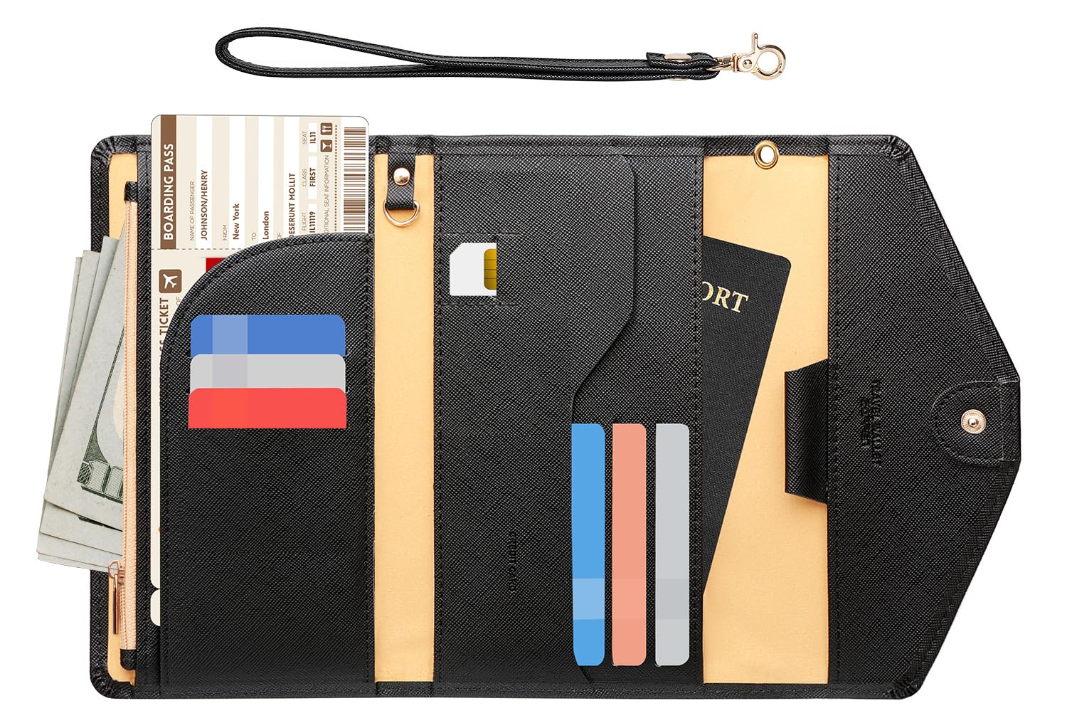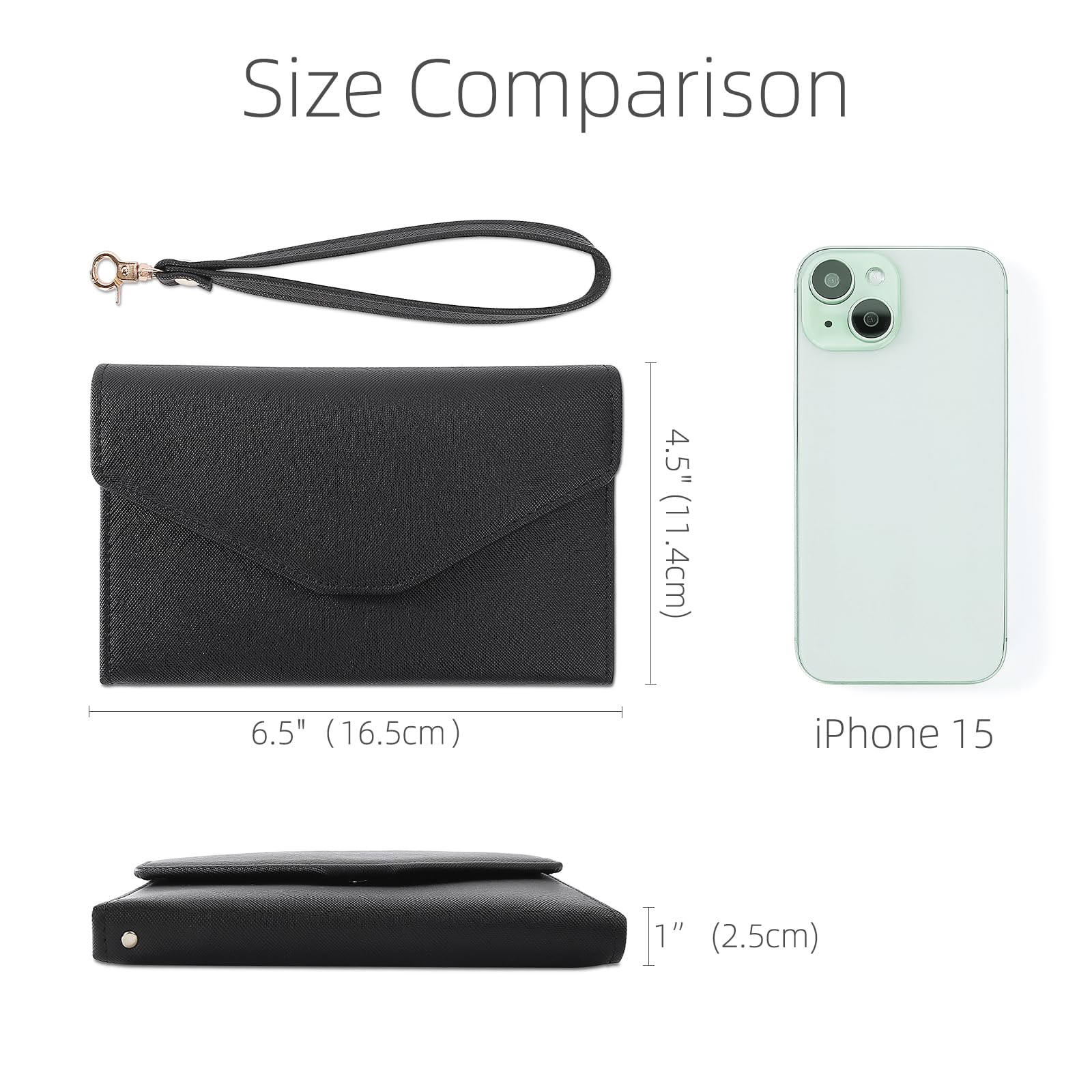 • Easy for Storing -L6.5' x W4.5' x H1.0', weight 0.35 lb. 6 card slots, 1 SIM slot, 1 boarding pass pocket, 1 pen holder(Pen not included), 1 key ring, 1 pocket for passport, 1 zipper pocket for coins, 1 cash pouch, keeping things organized but still close easily.