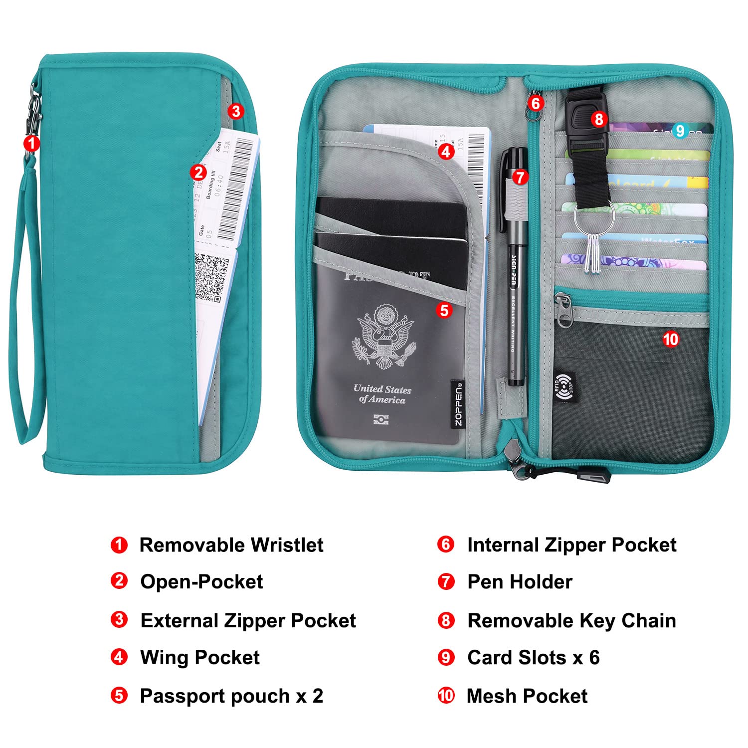 • EASY ORGANIZATION -- Plenty space for storing your travel essentials such as passport, boarding pass, tickets, invoice, pen, checkbook, money, coin, keys and shipping documents