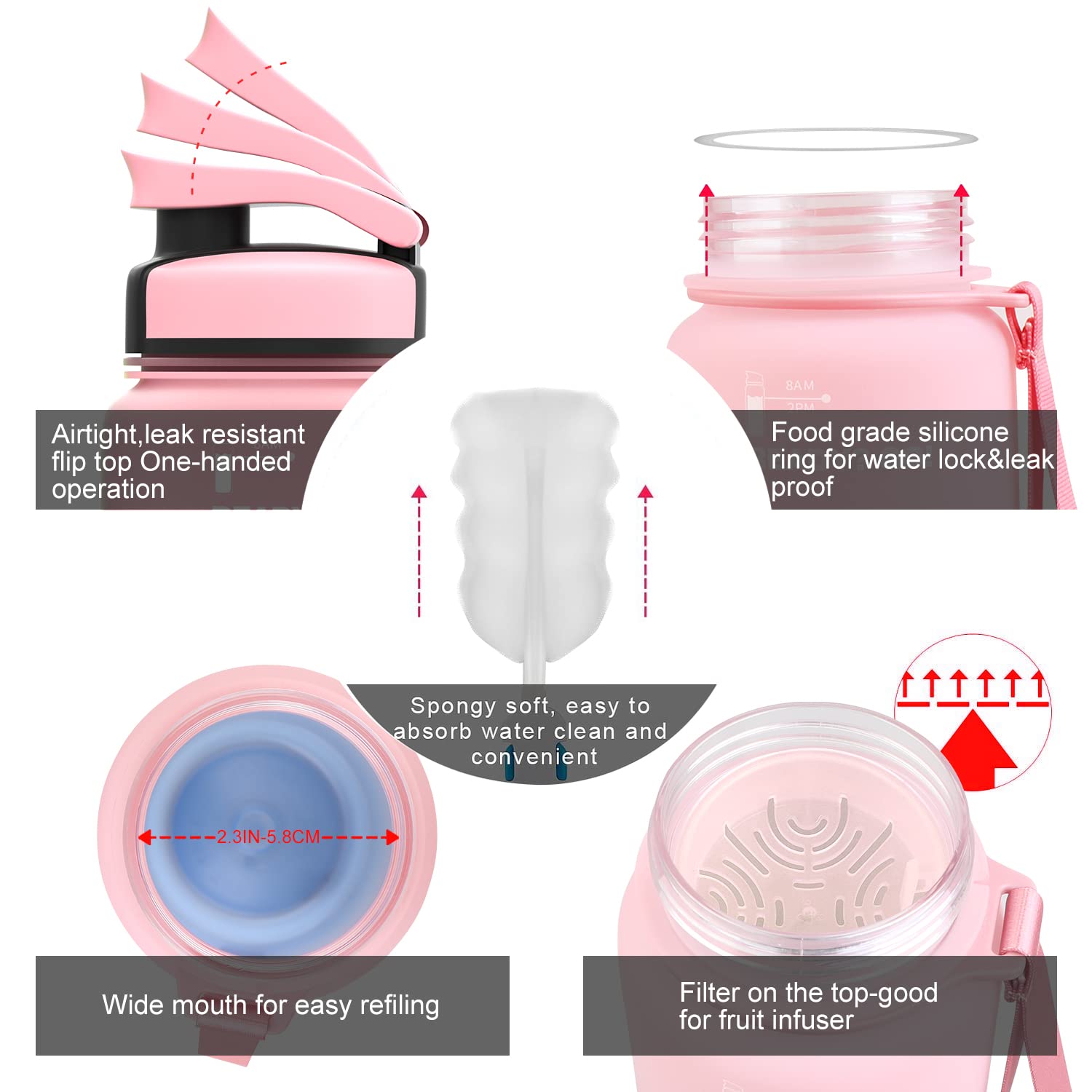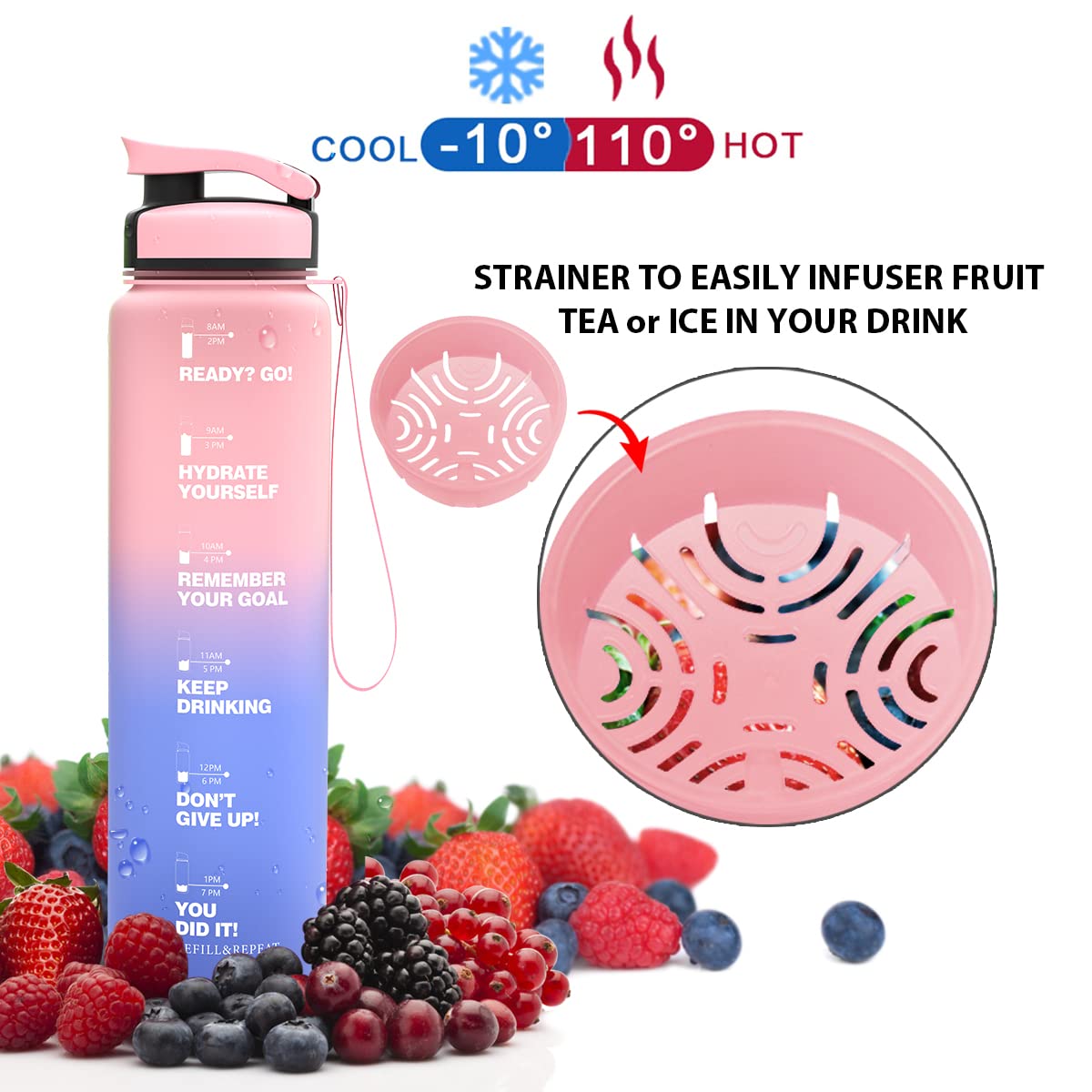 ZORRI 32 OZ Water Bottles, BPA Free Leak Proof Motivational Times Tracking Sports Bottle, Reusable Tritan Plastic Water Jug for Sports & Outdoors, Gym, Yoga, Workout, School, Office