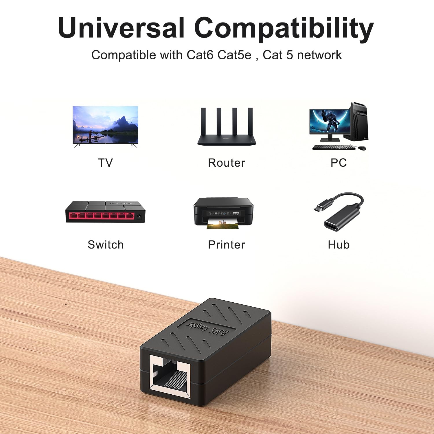 • Female to Female Ethernet coupler jack is compatible with Cat8 Cat7, Cat6, Cat5e, Cat5 network.